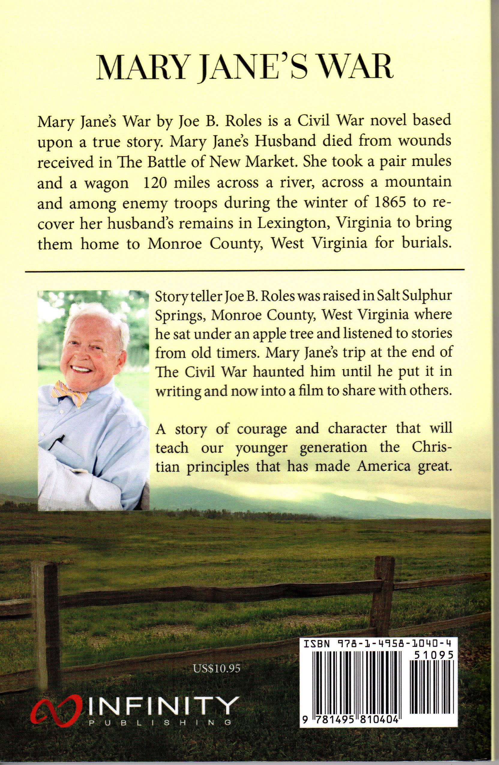 As time passed, Mary Jane married her childhood sweetheart Ralph Smith. They build a log home together and their family grew by six boys before a daughter came along. The Civil War came and Mary Jane witnessed the turmoil at the resort and the local military division as the excitement and glamour of the war grew into anger and hardship for all. At thirty-seven years of age with seven children and a farm to care for, Ralph Smith was reluctant to join the army even under local political pressure. Most of the people considered themselves to be part of Mother Virginia, and as Virginia went they would go, too.